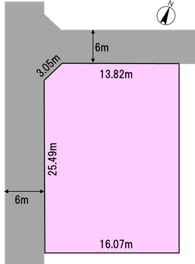 西側 幅員6m 接面25.49m 北側 幅員6m 接面13.82m |